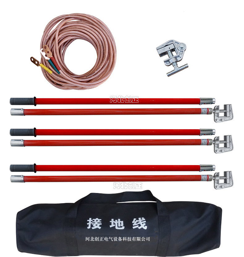 (2)由絕緣操作桿、導(dǎo)線夾、短路線、接地線、接地端子、匯流夾、接地夾等組成。